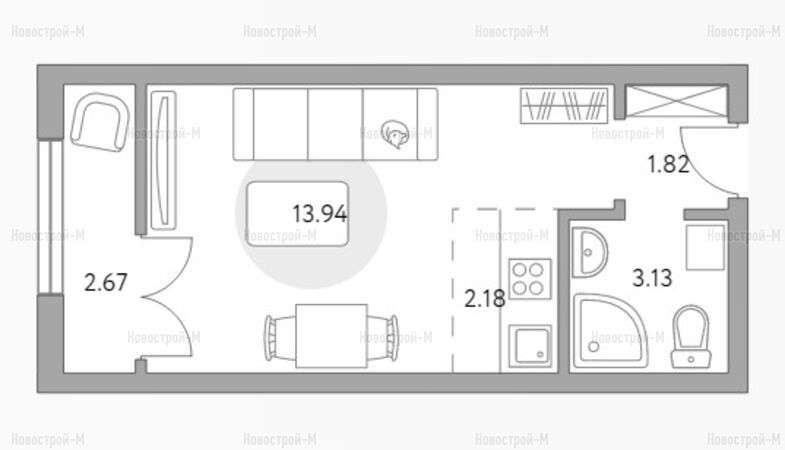 В ЖК «Государев дом» доступны квартиры от студий до 3-комнатных. Минимальная площадь жилья – 19,07 кв. м, максимальная – 68,44 кв. м. Покупатели могут выбрать как линейные варианты, так и «распашонки», санузлы – совмещенные и раздельные, во всех квартирах есть балкон или лоджия, высота потолков составляет 2,7 - 2,8 м.