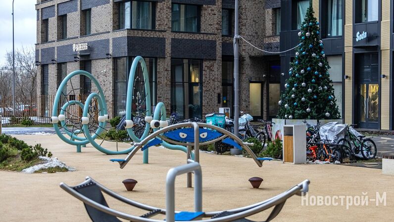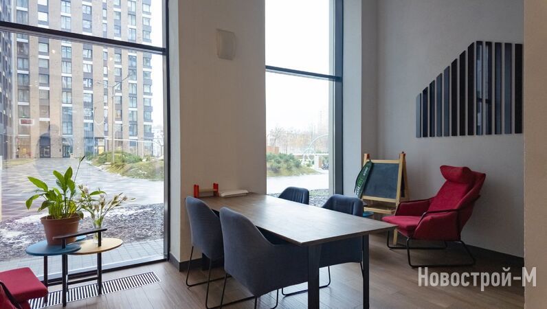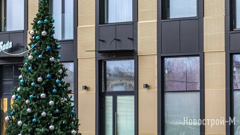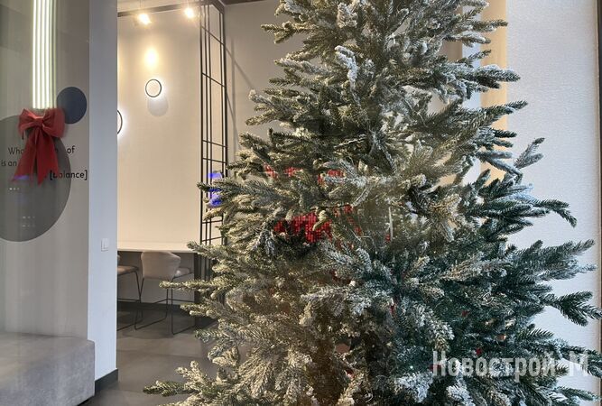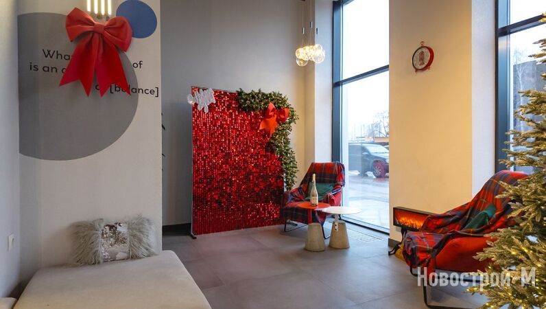 Не забываем и о том, что первые этажи домов ЖК balance отданы под коммерцию, и там уже работают супермаркеты, кафе, салоны красоты, фитнес и спа. Кроме того, в лобби оборудованы небольшие коворкинги (правда, их смысл для меня остался не очень понятен: зачем спускаться из квартиры и работать в подъезде, сидя недалеко от лифта). Колясочные, как мне удалось установить, есть не в каждой секции. Лобби уютные, с диванами, и украшены к Новому году.