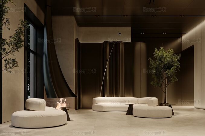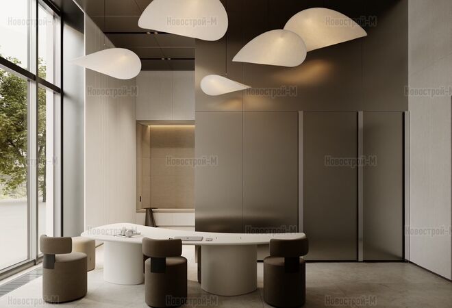 Дизайн лобби и общественных пространств создавали специалисты бюро ECUS. Чтобы создать особую атмосферу, они придумали уникальный световой сценарий, поработав как с естественным, так и с искусственным освещением.