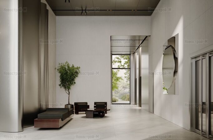 Освещение и атмосфера в лобби меняются в течение дня: утром и днем основным источником света выступают солнечные лучи, а с наступлением сумерек акценты смещаются в сторону искусственного освещения. Специфическое преломление лучей обеспечивают материалы в отделке лобби: рельефный керамогранит с акцентной подсветкой, покрытие с микротоппингом с естественной фактурой, прямые и волнообразные панели из металла.