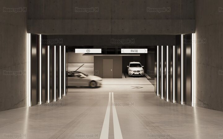 Для автомобилей резидентов предусмотрен подземный паркинг на 63 места, в числе которых 9 мест под электрокары с возможностью подзарядки. Автоматическая пропускная система распознает номерные знаки. Также попасть в паркинг можно с помощью RFID-метки или связавшись с охраной. Гостевой и сервисный доступ в паркинг обеспечивается по заявке собственника.