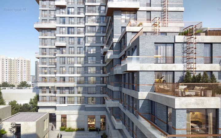 Среди лотов есть редкие форматы жилья с окнами в ванных и гардеробных, французскими балконами, а также с открытыми террасами (всего 7 лотов). На 16-м этаже располагается пентхаус площадью136,9 кв. м с террасой 33 кв. м, высотой потолка 4,1 м и с возможностью установки дровяного камина.