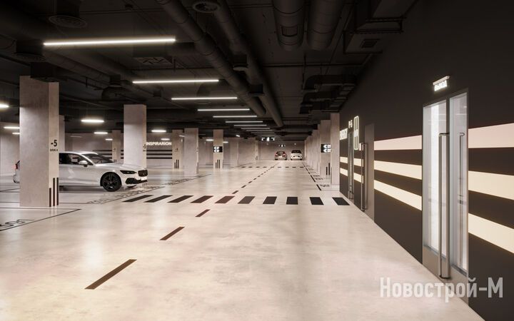 Под домами первой очереди будет 5-уровневый паркинг на 1030 машино-мест (что в 2 раза меньше числа квартир). В паркинге есть места разного формата и площади — от 13 до 25 кв. м. Предусмотрены зарядные станции для электрокаров и выделенные места для малых транспортных средств, а также зона кладовых (площадью от 3 до 14 кв. м) для удобного хранения сезонных вещей. На каждом этаже паркинга будут колясочные, санузлы и площадки для временной стоянки грузовых автомобилей.