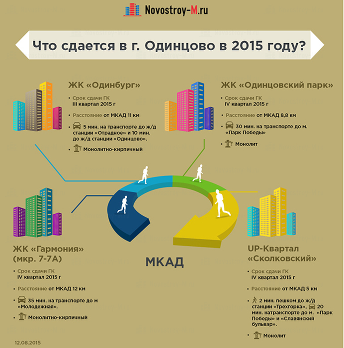 В городе Одинцово Московской области ведется строительство более 10 жилых комплексов, большинство из которых относятся к комфорт-классу, но также здесь представлены объекты сегментов «эконом» и «бизнес». Новые дома возводятся как в кварталах со сложившейся инфраструктурой, так и на новых территориях на окраинах города. Есть проекты на начальном этапе строительства, а есть те, которые будут сданы в эксплуатацию уже в текущем году, среди них: ЖК «Одинбург», ЖК «Одинцовский парк», ЖК «Гармония», UP-квартал «Сколковский».
