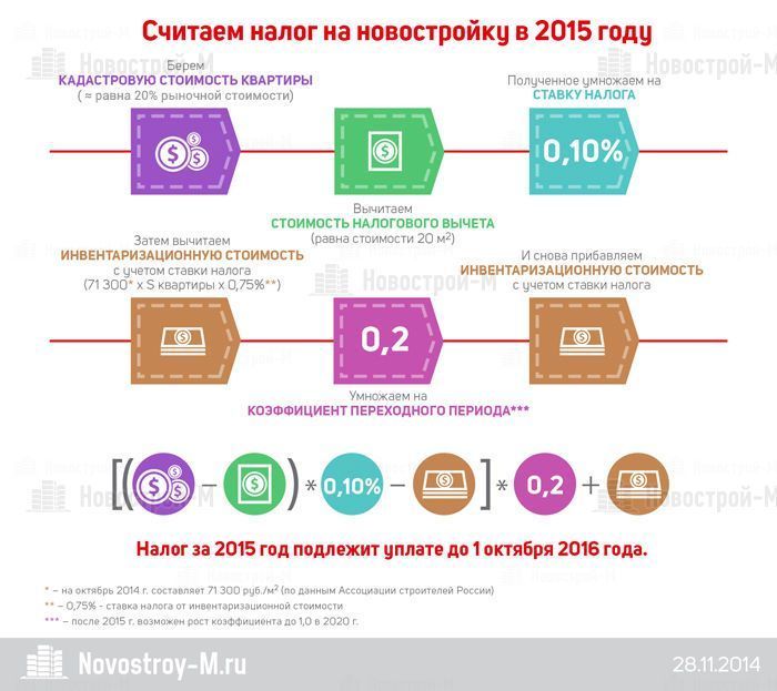 С 1 января 2015 г. при расчете налога на недвижимость будет учитываться кадастровая стоимость квартиры, которая гораздо выше, чем стоимость по БТИ. Нововведения повлекут за собой существенные расходы для собственников. Портал Novostroy-M.ru представялет алгоритм расчета нового налога для жилых помещений.