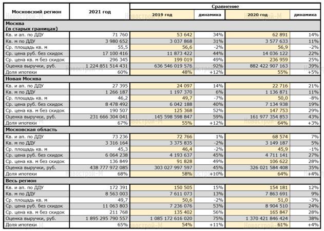Причины такого роста объемов реализации новостроек кроются в субсидированной ипотеке, которая действовала в первой половине 2021 года. Наибольший рост зафиксирован в Новой Москве – продажи повысились на 21% в лотах и на 43% по объему выручки, при этом за год цены на квартиры и апартаменты выросли на 29%. В старых границах столицы рост был немного скромнее – на 14% в лотах и на 39% по выручке, а цены за квадратный метр по итогам года выросли на 25%.