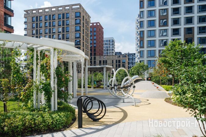 Проект по благоустройству дворов, разработанный WOWHAUS, учитывает сезонность: зимой подогреваемые дорожки заставляют забыть о гололёде, а летом дворы утопают в зелени. Здесь нашли своё место амфитеатр, лаунжи, детские и спортивные площадки, зоны отдыха и смотровая площадка с видом на реку.