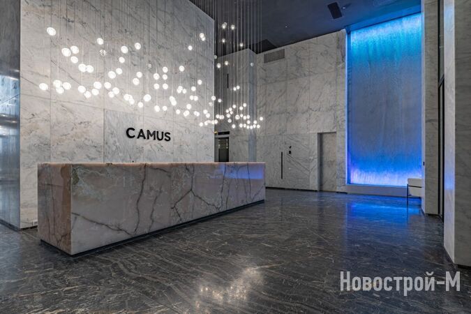 Разные цвета стоек ресепшн были вдохновлены оформлением первых книг писателей-модернистов, в честь которых названы дома. В лобби башни Dreiser глубокий оттенок итальянского мрамора Rouge du Roi стойки ресепшн перекликается с вишневой обложкой первого романа Драйзера «Сестра Кэрри». В корпусе Camus розовые переливы камня переносят в мир трансформаций экзистенциальных текстов Камю. В корпусе Mann кварцит Verde Lapponia напоминает о многослойности интеллектуальной прозы Томаса Манна, которая ждет за зеленой обложкой повести «Тристан».