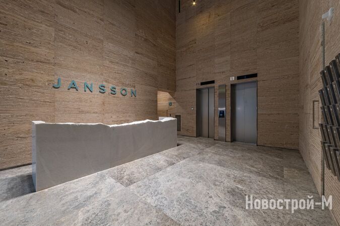 В оформлении интерьеров башен использовали также светлый камень, родом из Турции: в Camus и Dreiser — облачный Mugla White, в Mann — Striato Olimpico в серо-белую полоску.