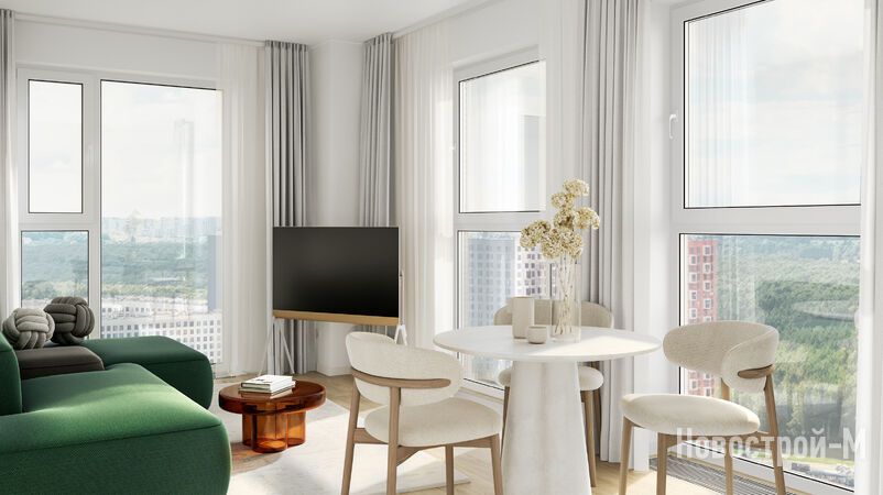 Такое решение позволило сделать здание выразительным, а квартиры более функциональными. Проектировщики добавили трапециевидные балконы, панорамные окна и разнообразные планировки на любой вкус.