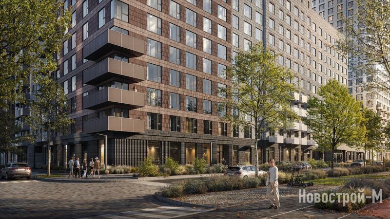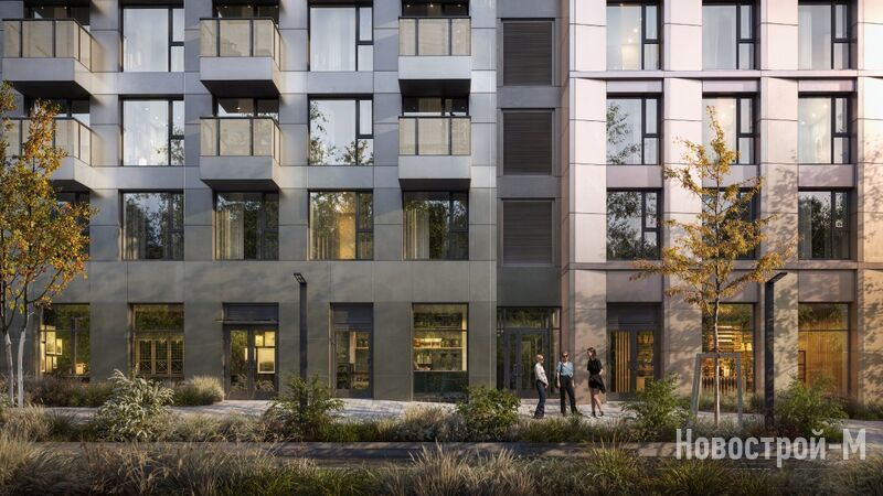 Лобби квартала светлые и просторные и устроены так, чтобы обеспечить жителям максимальный комфорт: здесь есть зоны ожидания, гостевой туалет и отдельное помещение для колясок, велосипедов и самокатов. А на первых этажах откроются кофейни, магазины, аптеки, пекарни и другие полезные для жителей сервисы и места. Мягкие светлые тона лобби выразительно дополнят контрастные чёрные и терракотовые акценты.