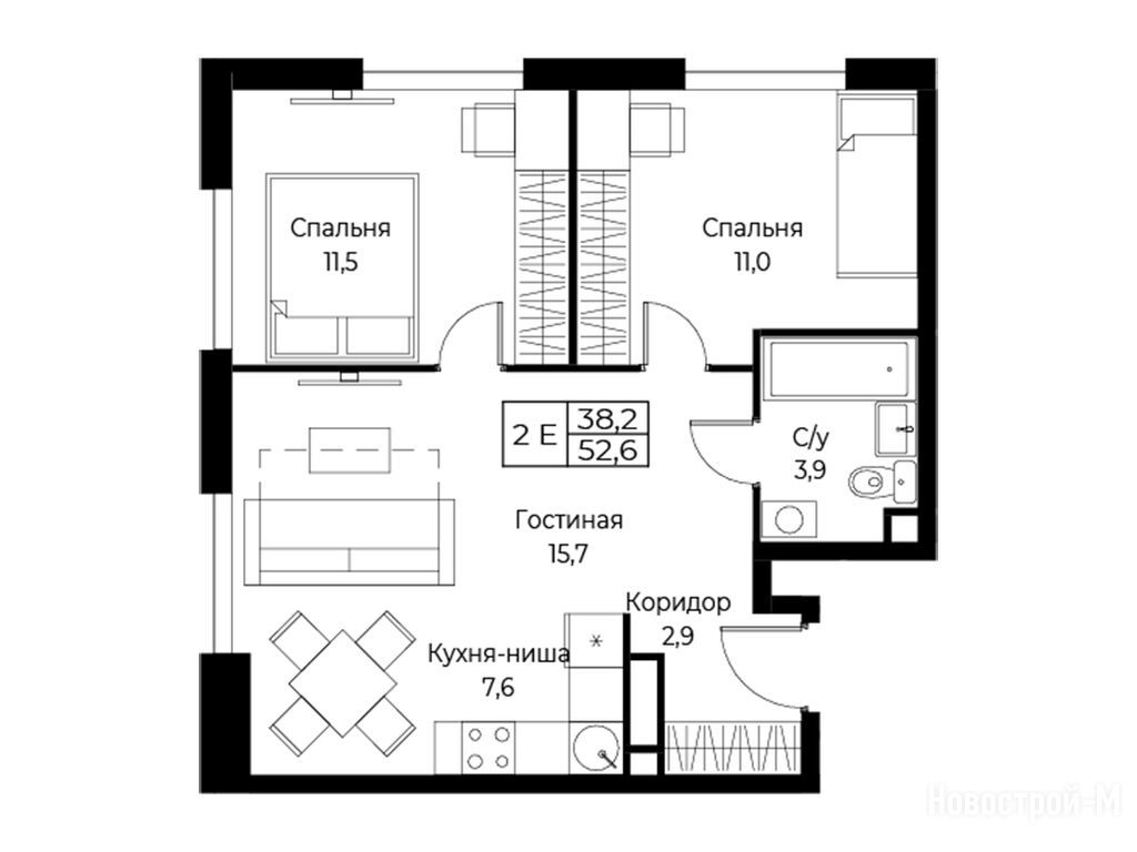 2-комн. помещение 52,60 м2 14 159 920
