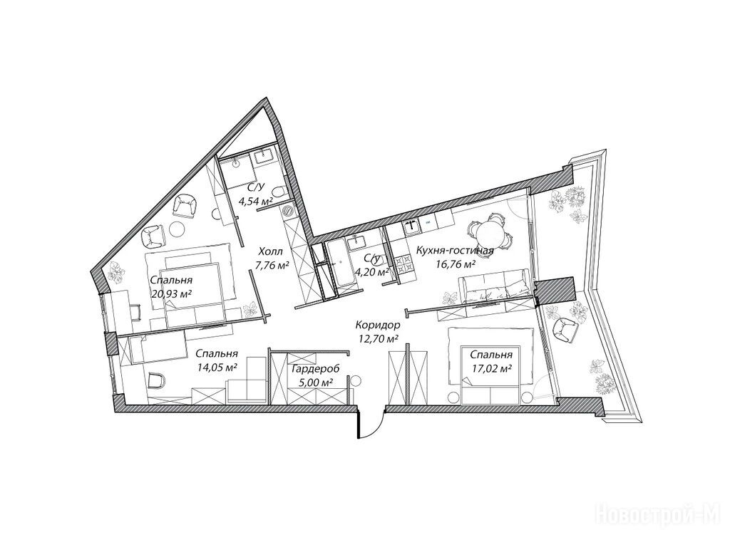 Что меня покорило сразу - это вид из окон, очень красиво. Панорама открывается потрясающая. И то, что рядом торговый центр и “Ашан” – это огромный плюс. За покупками далеко ходить не придется, всё под рукой. Очень удобно