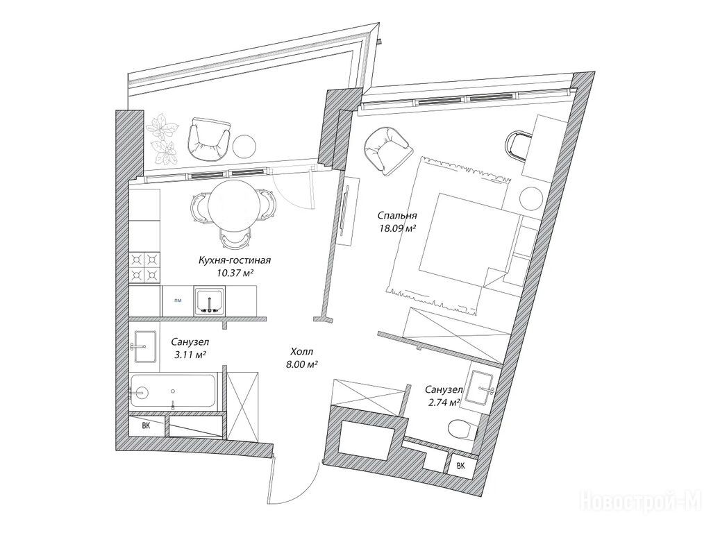 Что меня покорило сразу - это вид из окон, очень красиво. Панорама открывается потрясающая. И то, что рядом торговый центр и “Ашан” – это огромный плюс. За покупками далеко ходить не придется, всё под рукой. Очень удобно