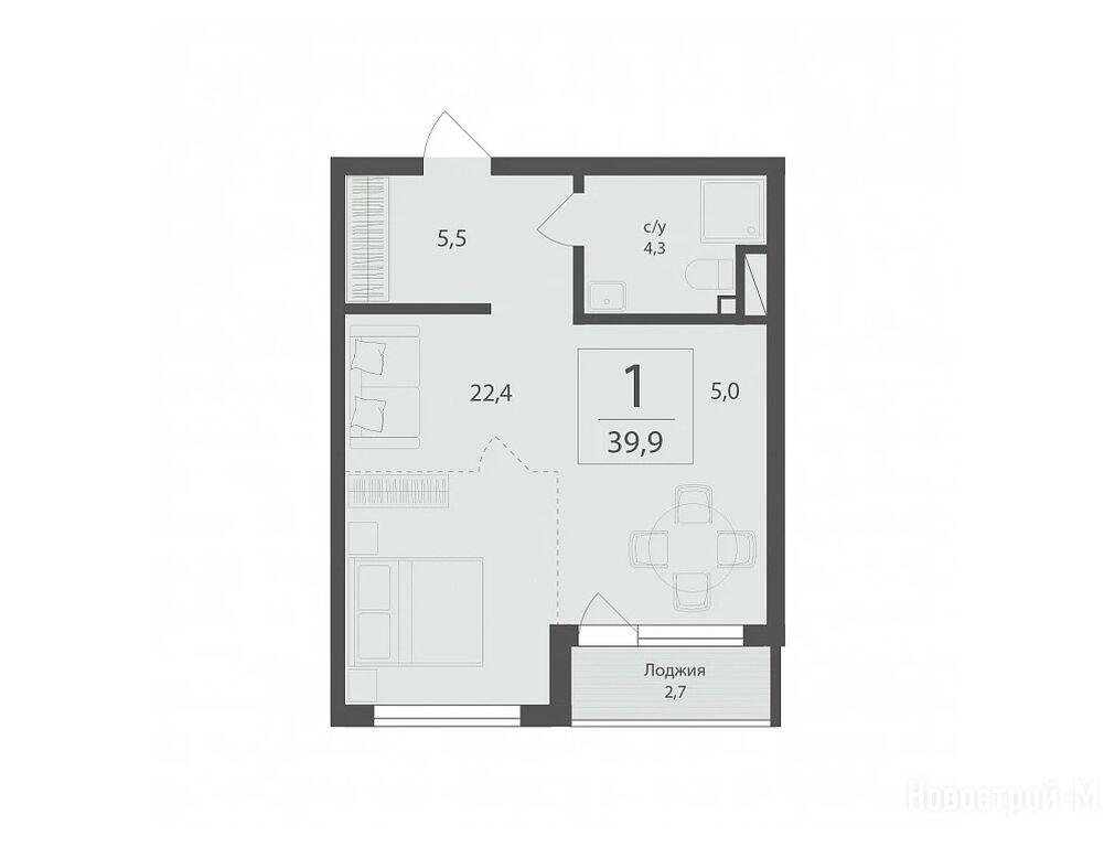 1-комн. апартамент, 40.81 м2, 4 этаж
