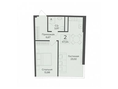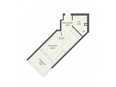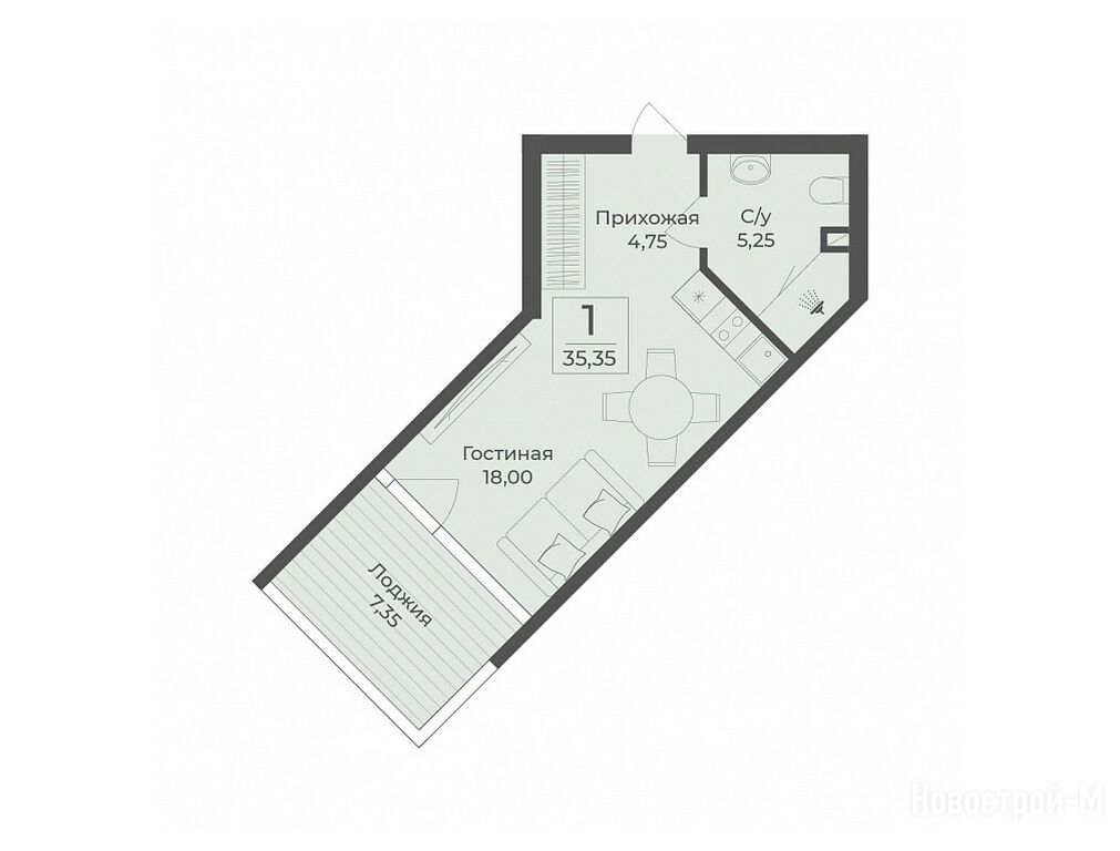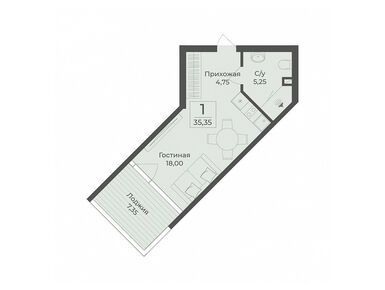 1-комн. апартамент, 35.35 м2, 1 этаж