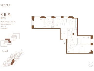 Продается трехкомнатная квартира в новостройке Квартал Vesper Кутузовский (Веспер Кутузовский) по адресу Москва, ЗАО, Дорогомилово, пр-кт Кутузовский, вл. 12. Общая площадь квартиры - 141.3 кв. м. Тип проекта, по которому построен дом — Монолит, компания-застройщик — ООО СЗ ДИВИНУС ИММОБИЛА, Vesper (Веспер). Стоимость квартиры — 205 068 690 руб. Способы оплаты можно уточнить у продавца. Срок сдачи — 1 квартал 2028. Более подробная информация по телефону.
