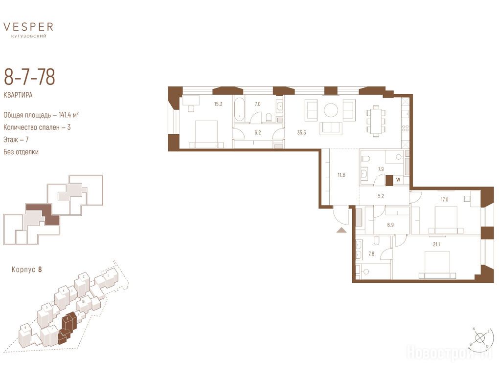 Продается трехкомнатная квартира в новостройке Квартал Vesper Кутузовский (Веспер Кутузовский) по адресу Москва, ЗАО, Дорогомилово, пр-кт Кутузовский, вл. 12. Общая площадь квартиры - 141.4 кв. м. Тип проекта, по которому построен дом — Монолит, компания-застройщик — ООО СЗ ДИВИНУС ИММОБИЛА, Vesper (Веспер). Стоимость квартиры — 209 583 080 руб. Способы оплаты можно уточнить у продавца. Срок сдачи — 1 квартал 2028. Более подробная информация по телефону.