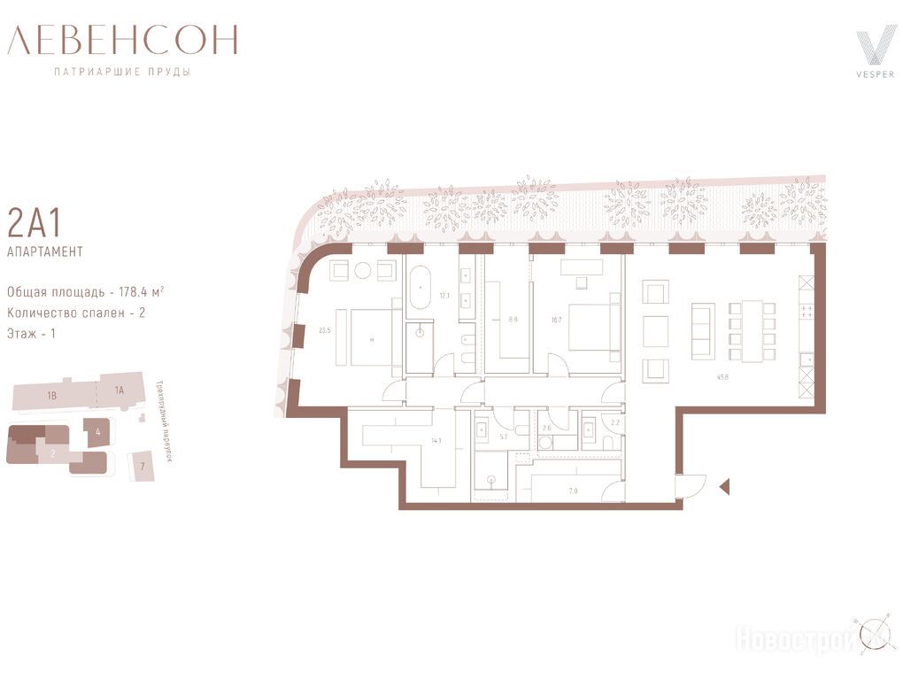 Продается двухкомнатное помещение в новостройке Levenson (Левенсон) по адресу Москва, ЦАО, Тверской, Трехпрудный пер., д. 9/1. Общая площадь помещения - 178.4 кв. м. Тип проекта, по которому построен дом — Монолитно-кирпичный,Кирпичный, компания-застройщик — ООО СЗ ТРЕХПРУДНЫЙ, Vesper (Веспер). Стоимость помещения — 499 520 000 руб. Способы оплаты можно уточнить у продавца. Срок сдачи — 3 квартал 2027. Более подробная информация по телефону.