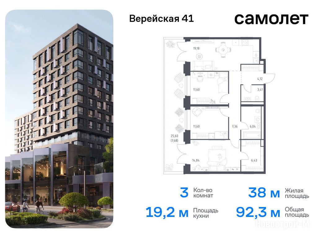 Продается трехкомнатная квартира в новостройке ЖК «Верейская 41» по адресу Москва, ЗАО, Можайский, корпус 2.2. Общая площадь квартиры - 92.26 кв. м. Тип проекта, по которому построен дом — Монолитно-кирпичный, компания-застройщик — АО СЗ «Самолет-Верейская», Группа «Самолет». Стоимость квартиры — 43 740 903 руб. Способы оплаты можно уточнить у продавца. Срок сдачи — 4 квартал 2025. Более подробная информация по телефону.
