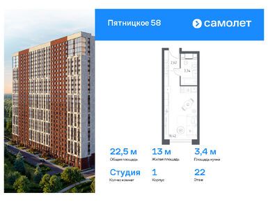 Продается помещение-студия в новостройке «Пятницкое 58» по адресу Москва, СЗАО, Митино, Пятницкое шоссе, д. 58 Б. Общая площадь помещения - 20.45 кв. м. Тип проекта, по которому построен дом — Кирпичный, компания-застройщик — Группа «Самолет», «СЗ «Пятницкое шоссе 3». Стоимость помещения — 7 456 522 руб. Способы оплаты можно уточнить у продавца. Более подробная информация по телефону.