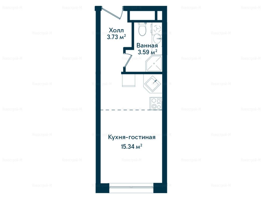 1-комн. апартамент, 22.70 м2, 12 этаж