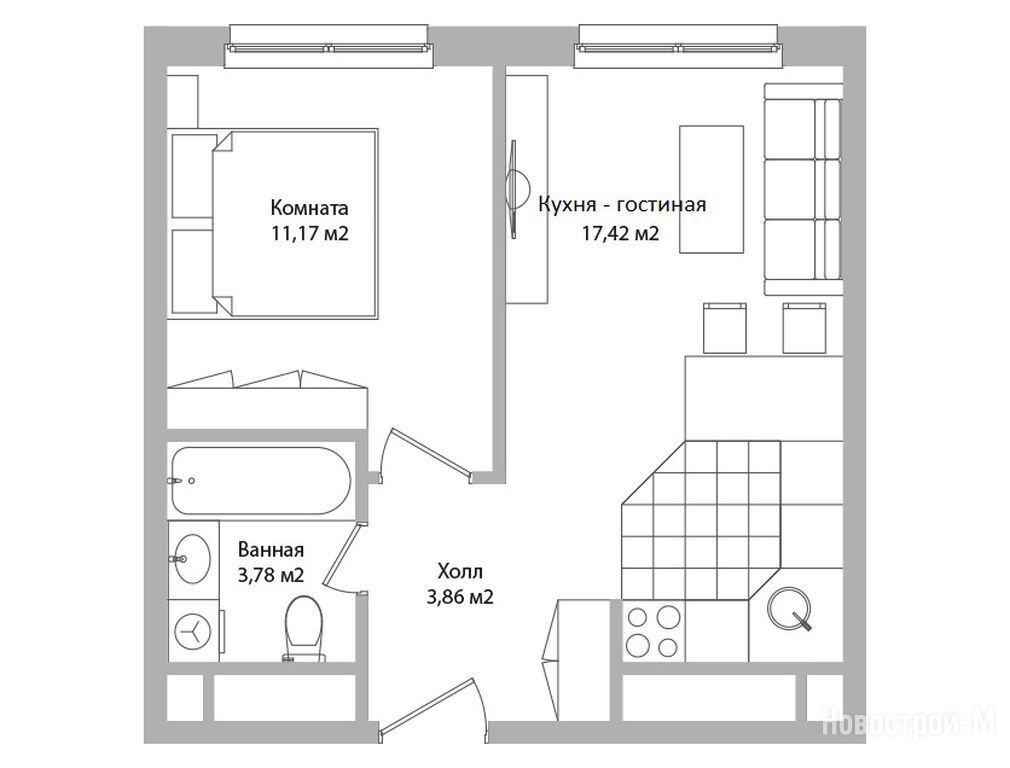 2-комн. апартамент, 36.20 м2, 11 этаж