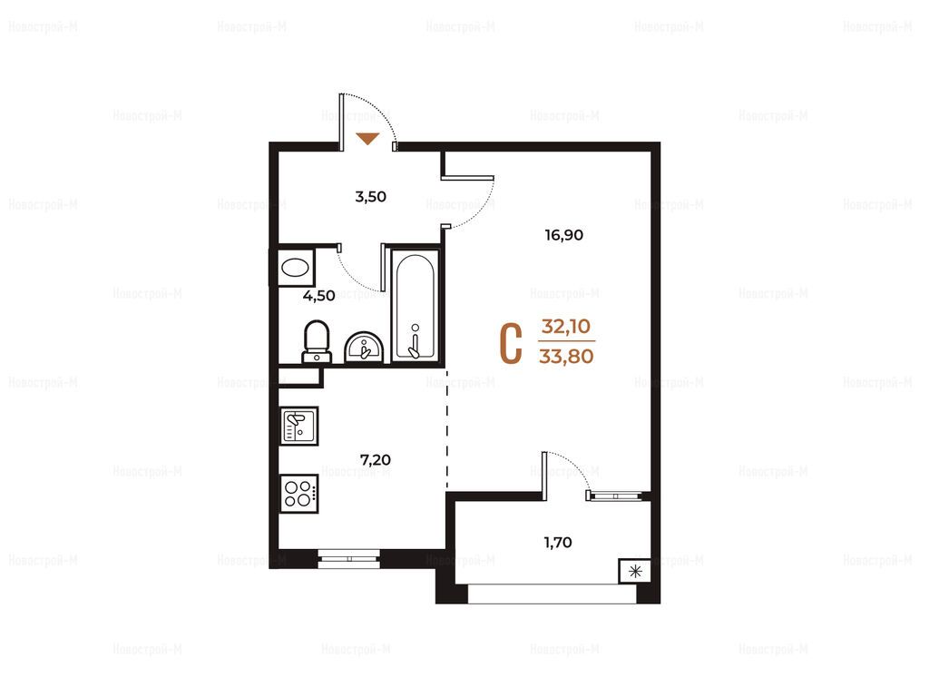 студия 33,60 м2 9 634 733