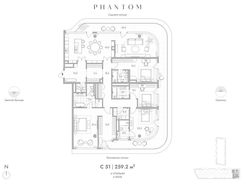 Продается четырехкомнатная квартира в новостройке Клубный дом Phantom (Фантом) по адресу Москва, ЦАО, Мещанский, Малая Сухаревская пл., вл. 6, стр. 2, 3, 4, 8. Общая площадь квартиры - 259.2 кв. м. Тип проекта, по которому построен дом — Монолитно-кирпичный, компания-застройщик — Sense Development. Стоимость квартиры — 645 408 000 руб. Способы оплаты можно уточнить у продавца. Срок сдачи — 3 квартал 2027. Более подробная информация по телефону.