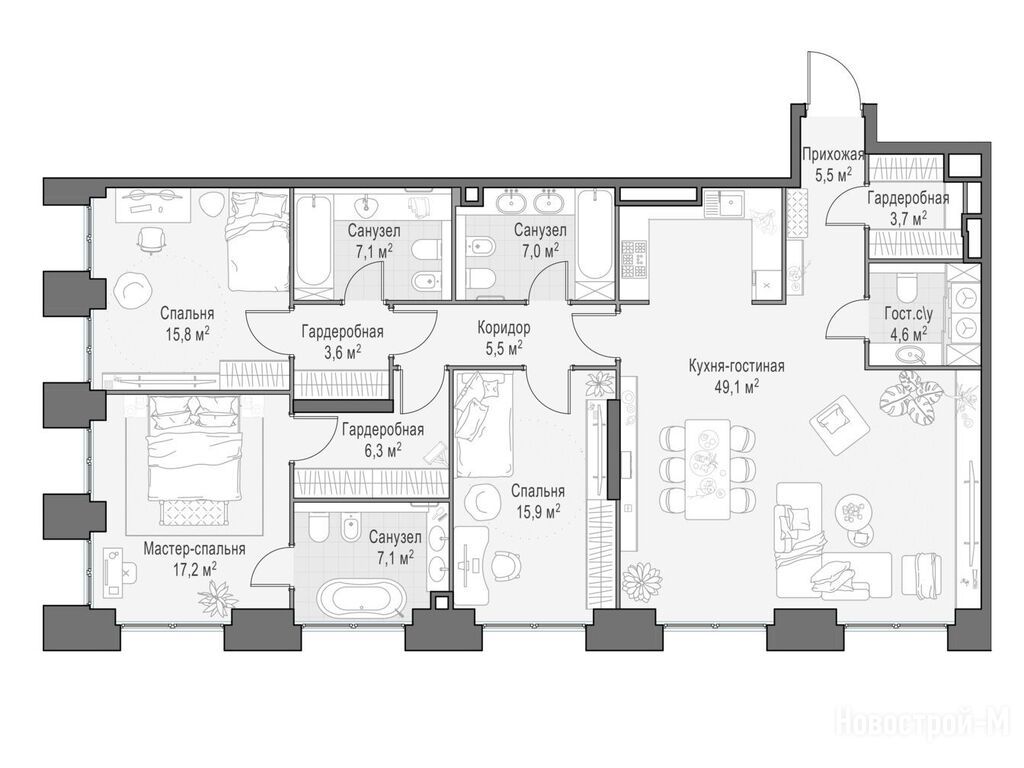 Продается четырехкомнатная квартира в новостройке Квартал Life Time по адресу Москва, ЦАО, Пресненский, ул. Сергея Макеева, 11/9. Общая площадь квартиры - 149.1 кв. м. Тип проекта, по которому построен дом — Монолит, компания-застройщик — Sminex. Стоимость квартиры — 180 530 000 руб. Способы оплаты можно уточнить у продавца. Срок сдачи — 2 квартал 2026. Более подробная информация по телефону.