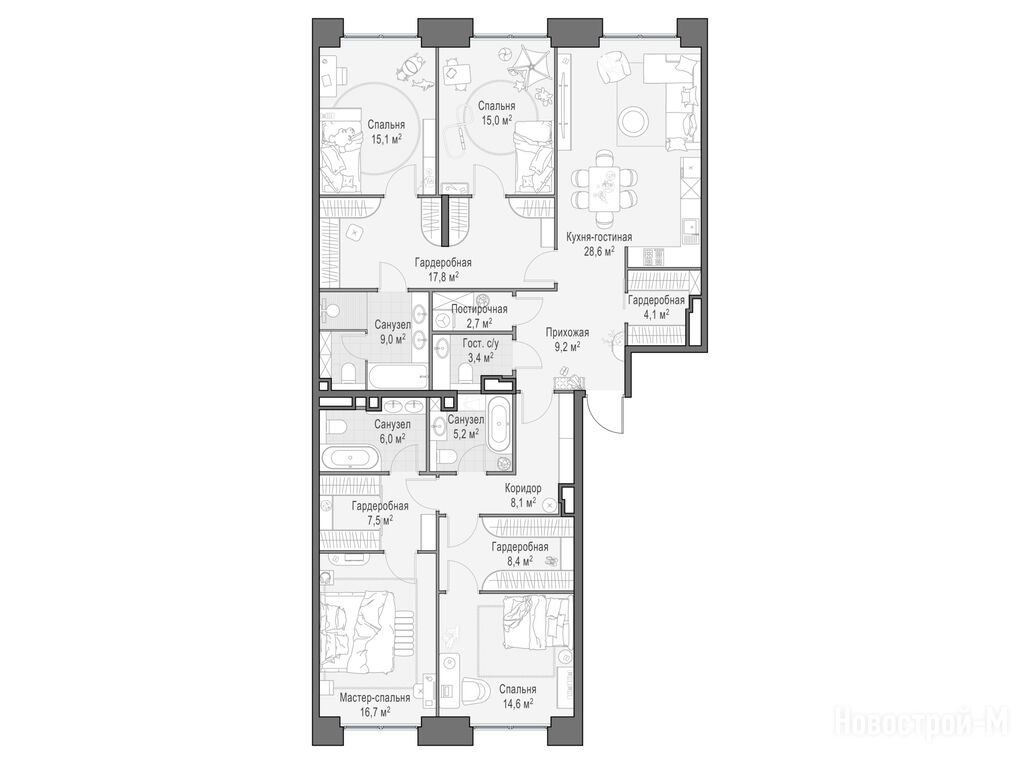 Продается четырехкомнатная квартира в новостройке Квартал Life Time по адресу Москва, ЦАО, Пресненский, ул. Сергея Макеева, 11/9. Общая площадь квартиры - 173.1 кв. м. Тип проекта, по которому построен дом — Монолит, компания-застройщик — Sminex. Стоимость квартиры — 241 820 000 руб. Способы оплаты можно уточнить у продавца. Срок сдачи — 2 квартал 2026. Более подробная информация по телефону.