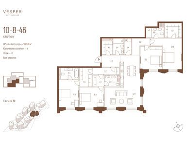 Продается четырехкомнатная квартира в новостройке Квартал Vesper Кутузовский (Веспер Кутузовский) по адресу Москва, ЗАО, Дорогомилово, пр-кт Кутузовский, вл. 12. Общая площадь квартиры - 179.1 кв. м. Тип проекта, по которому построен дом — Монолит, компания-застройщик — ООО СЗ ДИВИНУС ИММОБИЛА, Vesper (Веспер). Стоимость квартиры — 260 662 140 руб. Способы оплаты можно уточнить у продавца. Срок сдачи — 1 квартал 2028. Более подробная информация по телефону.