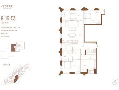 Продается четырехкомнатная квартира в новостройке Квартал Vesper Кутузовский (Веспер Кутузовский) по адресу Москва, ЗАО, Дорогомилово, пр-кт Кутузовский, вл. 12. Общая площадь квартиры - 175.1 кв. м. Тип проекта, по которому построен дом — Монолит, компания-застройщик — ООО СЗ ДИВИНУС ИММОБИЛА, Vesper (Веспер). Стоимость квартиры — 244 772 290 руб. Способы оплаты можно уточнить у продавца. Срок сдачи — 1 квартал 2028. Более подробная информация по телефону.