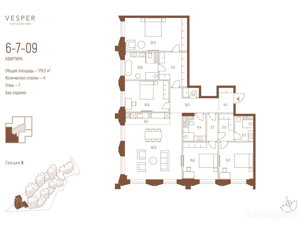 Продается четырехкомнатная квартира в новостройке Квартал Vesper Кутузовский (Веспер Кутузовский) по адресу Москва, ЗАО, Дорогомилово, пр-кт Кутузовский, вл. 12. Общая площадь квартиры - 179.5 кв. м. Тип проекта, по которому построен дом — Монолит, компания-застройщик — ООО СЗ ДИВИНУС ИММОБИЛА, Vesper (Веспер). Стоимость квартиры — 241 176 200 руб. Способы оплаты можно уточнить у продавца. Срок сдачи — 1 квартал 2028. Более подробная информация по телефону.
