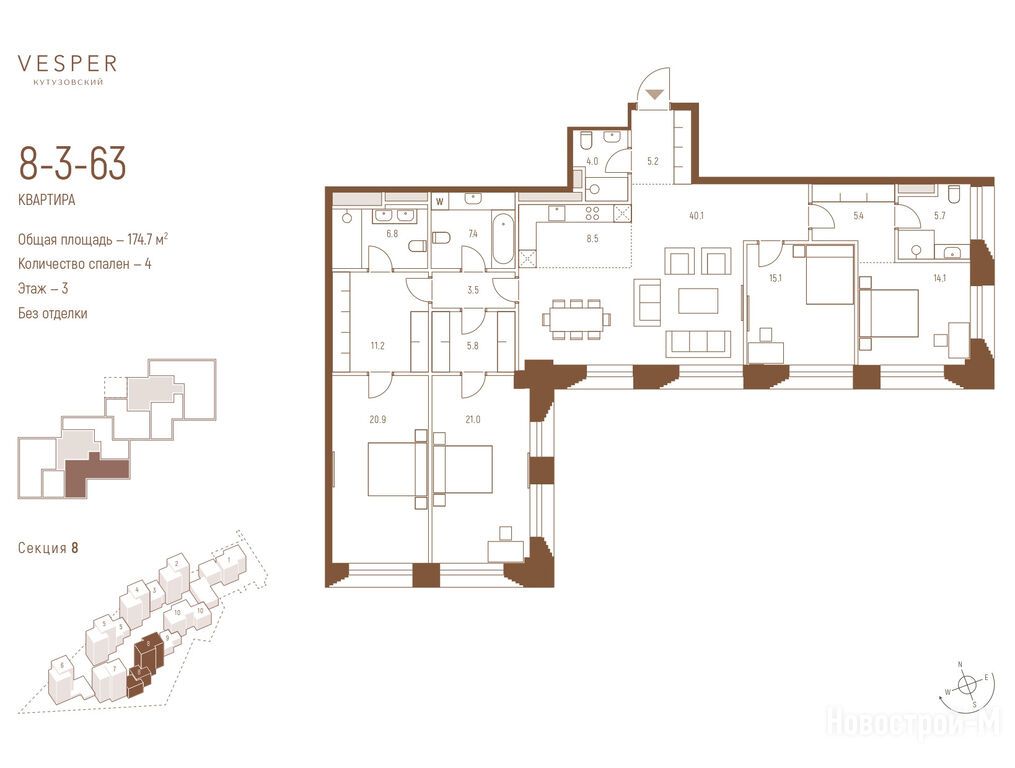 Продается четырехкомнатная квартира в новостройке Квартал Vesper Кутузовский (Веспер Кутузовский) по адресу Москва, ЗАО, Дорогомилово, пр-кт Кутузовский, вл. 12. Общая площадь квартиры - 174.7 кв. м. Тип проекта, по которому построен дом — Монолит, компания-застройщик — ООО СЗ ДИВИНУС ИММОБИЛА, Vesper (Веспер). Стоимость квартиры — 234 622 100 руб. Способы оплаты можно уточнить у продавца. Срок сдачи — 1 квартал 2028. Более подробная информация по телефону.