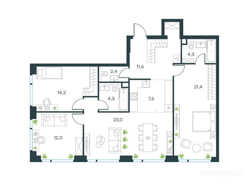 Продается четырехкомнатная квартира в новостройке Level Мичуринский по адресу Москва, ЗАО, Очаково-Матвеевское, ул. Озёрная, д. 1, к. 2/4. Общая площадь квартиры - 103.6 кв. м. Тип проекта, по которому построен дом — Монолит, компания-застройщик — Level Group (Левел Групп), ООО СЗ БАЗИСИНВЕСТ. Стоимость квартиры — 60 768 684 руб. Способы оплаты можно уточнить у продавца. Более подробная информация по телефону.