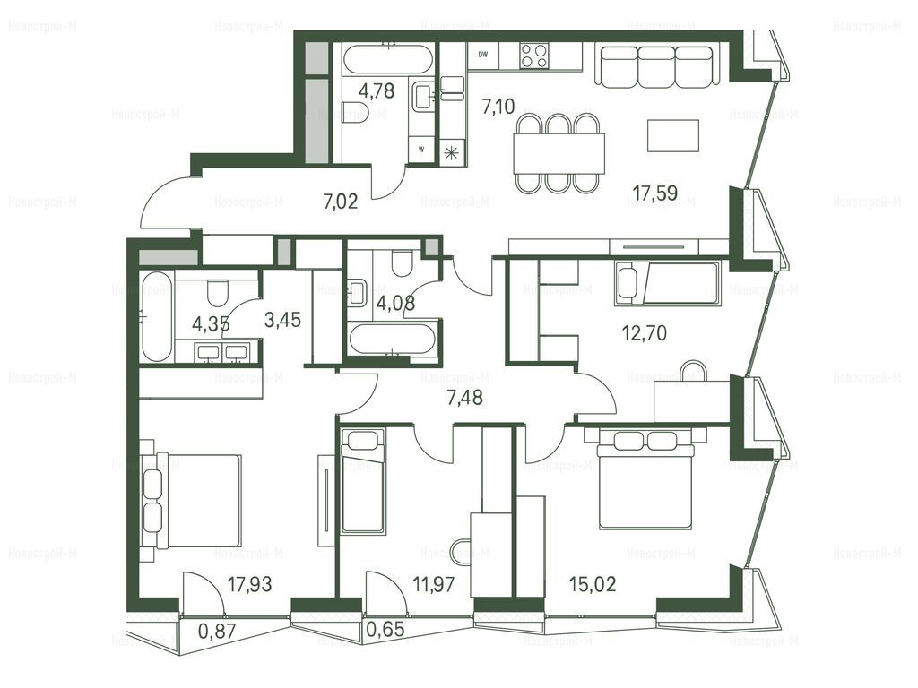 Продается четырехкомнатная квартира в новостройке ЖК Moments (Моментс) по адресу Москва, СЗАО, Щукино, пр-д 3-й Красногорский. Общая площадь квартиры - 113.93 кв. м. Тип проекта, по которому построен дом — Монолитно-кирпичный, компания-застройщик — FORMA (Форма). Стоимость квартиры — 89 093 260 руб. Способы оплаты можно уточнить у продавца. Срок сдачи — 4 квартал 2025. Более подробная информация по телефону.