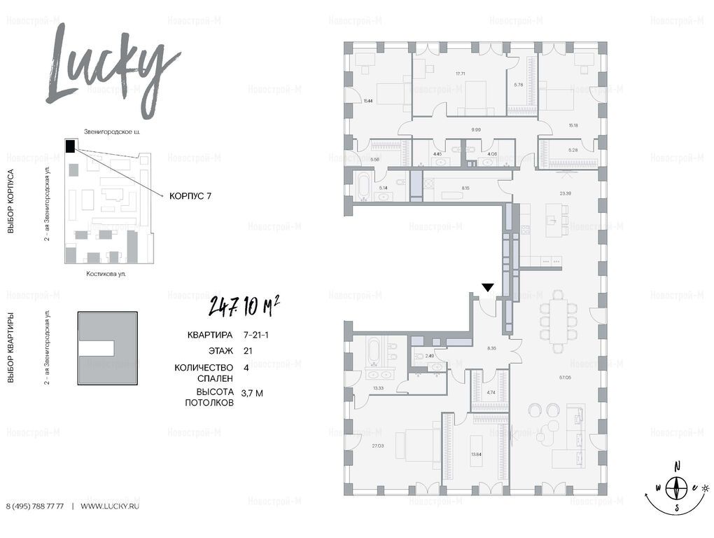 Продается четырехкомнатная квартира в новостройке Жилой квартал Lucky (Лаки) по адресу Москва, ЦАО, Пресненский, 2-я Звенигородская улица, 14. Общая площадь квартиры - 247.1 кв. м. Тип проекта, по которому построен дом — Монолитно-кирпичный, компания-застройщик — СЗ«Спектр» , Vesper (Веспер). Стоимость квартиры — 494 391 503 руб. Способы оплаты можно уточнить у продавца. Более подробная информация по телефону.