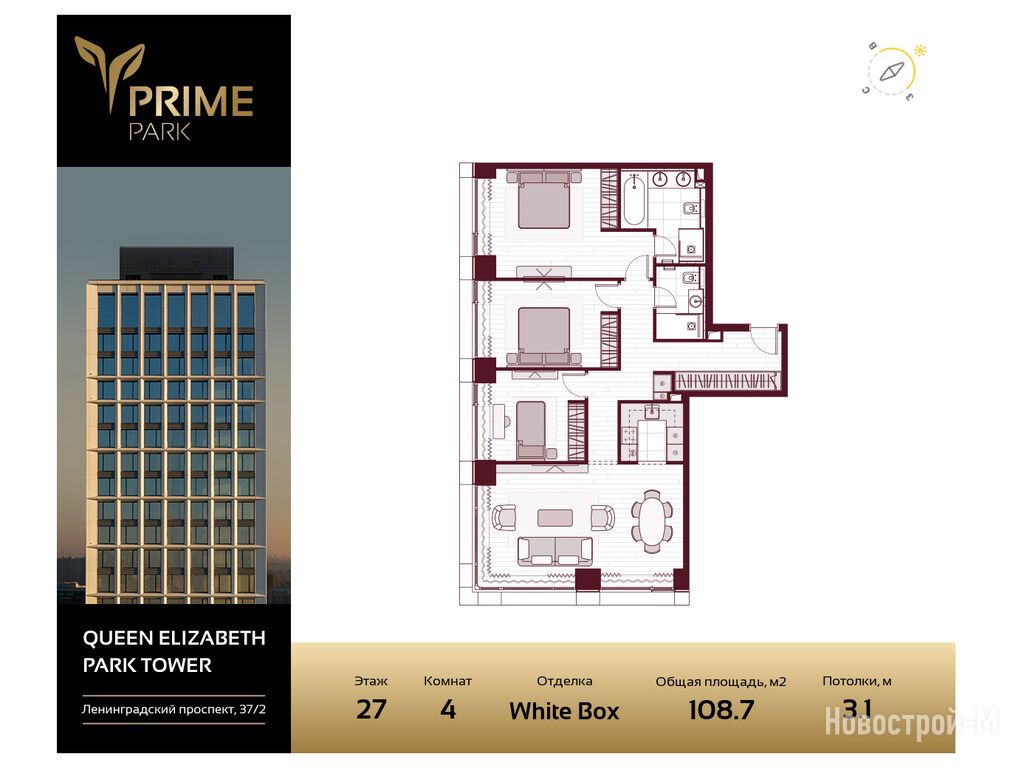 Продается четырехкомнатная квартира в новостройке Жилой квартал Prime Park (Прайм Парк) по адресу Москва, САО, Хорошевский, Ленинградский пр-т, 37/2. Общая площадь квартиры - 108.7 кв. м. Тип проекта, по которому построен дом — Монолит, компания-застройщик — Optima Development. Стоимость квартиры — 108 163 943 руб. Способы оплаты можно уточнить у продавца. Более подробная информация по телефону.