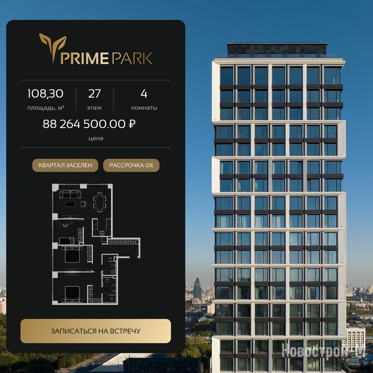 Продается четырехкомнатная квартира в новостройке Жилой квартал Prime Park (Прайм Парк) по адресу Москва, САО, Хорошевский, Ленинградский пр-т, 37/8. Общая площадь квартиры - 108.3 кв. м. Тип проекта, по которому построен дом — Монолит, компания-застройщик — Optima Development. Стоимость квартиры — 88 264 500 руб. Способы оплаты можно уточнить у продавца. Срок сдачи — 3 квартал 2027. Более подробная информация по телефону.