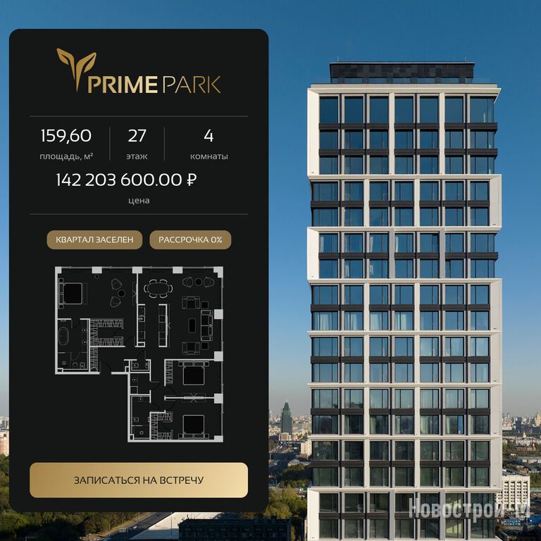 Продается четырехкомнатная квартира в новостройке Жилой квартал Prime Park (Прайм Парк) по адресу Москва, САО, Хорошевский, Ленинградский пр-т, 37/8. Общая площадь квартиры - 159.6 кв. м. Тип проекта, по которому построен дом — Монолит, компания-застройщик — Optima Development. Стоимость квартиры — 142 203 600 руб. Способы оплаты можно уточнить у продавца. Срок сдачи — 4 квартал 2026. Более подробная информация по телефону.