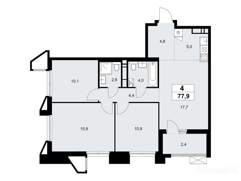 Продается четырехкомнатная квартира в новостройке Жилой квартал «Прокшино» по адресу Москва, ТиНАО, Новомосковский АО, Сосенское С/П, жилой комплекс Прокшино, 7.1.4. Общая площадь квартиры - 77.9 кв. м. Тип проекта, по которому построен дом — Монолит, компания-застройщик — ООО «А101». Стоимость квартиры — 29 625 370 руб. Способы оплаты можно уточнить у продавца. Срок сдачи — 1 квартал 2027. Более подробная информация по телефону.