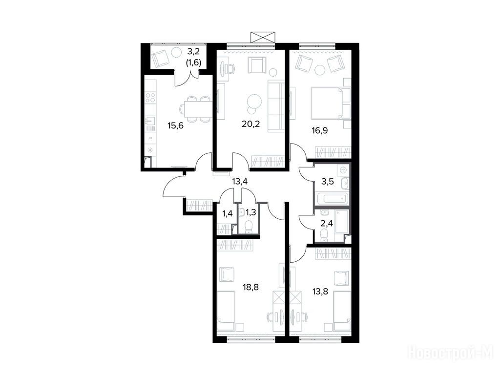 Продается четырехкомнатная квартира в новостройке Жилой район «Южная Битца» по адресу Московская область, Ленинский городской округ, Булатниковское С/П, пос. Битца, мкр. Южная Битца, корп. 8. Общая площадь квартиры - 109.1 кв. м. Тип проекта, по которому построен дом — Панельный, компания-застройщик — Специализированный застройщик «Исторический район», ДСК-1, ГК ФСК. Стоимость квартиры — 22 004 379 руб. Способы оплаты можно уточнить у продавца. Более подробная информация по телефону.