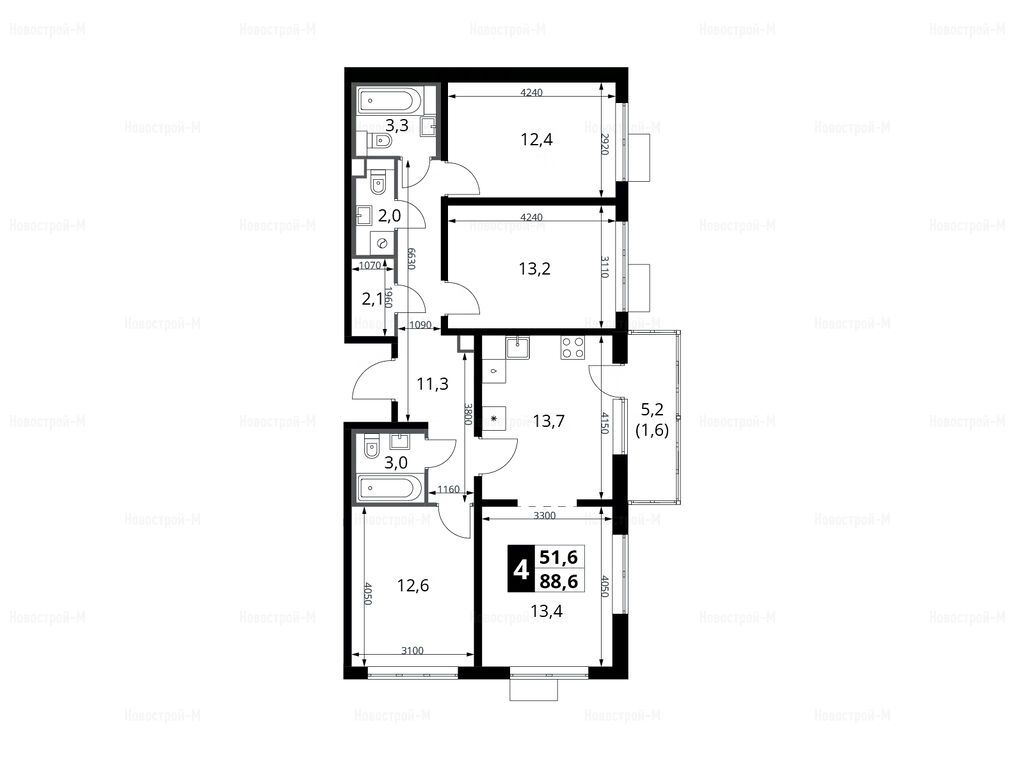 Продается четырехкомнатная квартира в новостройке Жилой район «Южная Битца» по адресу Московская область, Ленинский городской округ, Булатниковское С/П, пос. Битца, мкр. Южная Битца, корп. 10. Общая площадь квартиры - 89 кв. м. Тип проекта, по которому построен дом — Панельный, компания-застройщик — Специализированный застройщик «Исторический район», ДСК-1, ГК ФСК. Стоимость квартиры — 18 942 048 руб. Способы оплаты можно уточнить у продавца. Более подробная информация по телефону.