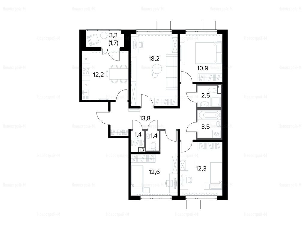 Продается четырехкомнатная квартира в новостройке ЖК «1-й Донской» (Первый Донской) по адресу Московская область, Ленинский городской округ, Горки Ленинские Г/П, Сапроново деревня, мкр. Сапроново, корп. 2. Общая площадь квартиры - 90.5 кв. м. Тип проекта, по которому построен дом — Панельный, компания-застройщик — ДСК-1, ГК ФСК. Стоимость квартиры — 18 375 663 руб. Способы оплаты можно уточнить у продавца. Более подробная информация по телефону.