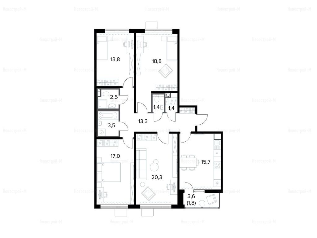 Продается четырехкомнатная квартира в новостройке ЖК «1-й Донской» (Первый Донской) по адресу Московская область, Ленинский городской округ, Горки Ленинские Г/П, Сапроново деревня, мкр. Сапроново, корп. 2. Общая площадь квартиры - 109.5 кв. м. Тип проекта, по которому построен дом — Панельный, компания-застройщик — ДСК-1, ГК ФСК. Стоимость квартиры — 17 975 739 руб. Способы оплаты можно уточнить у продавца. Более подробная информация по телефону.