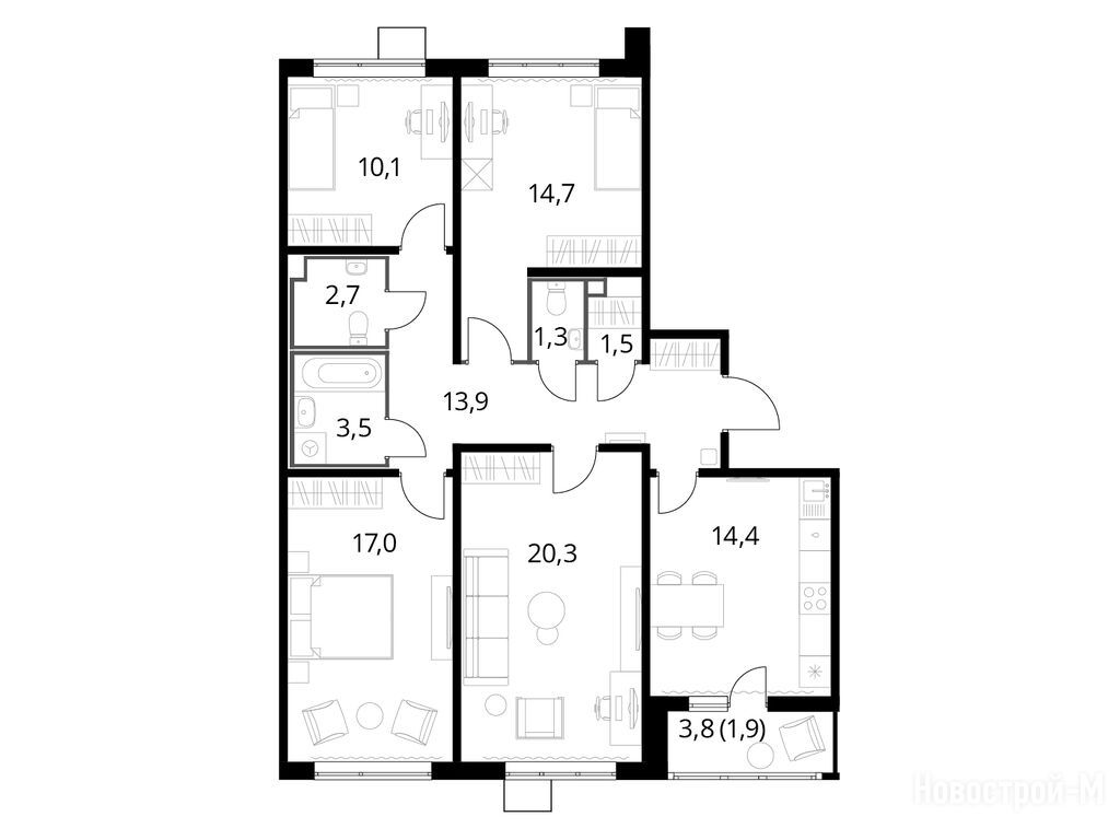 Продается четырехкомнатная квартира в новостройке ЖК «1-й Лермонтовский» по адресу Московская область, Люберцы городской округ, Люберцы, Люберцы, жилой комплекс 1-й Лермонтовский, корп. 3.1. Общая площадь квартиры - 101 кв. м. Тип проекта, по которому построен дом — Панельный, компания-застройщик — ГК ФСК, ДСК-1. Стоимость квартиры — 20 735 300 руб. Способы оплаты можно уточнить у продавца. Более подробная информация по телефону.