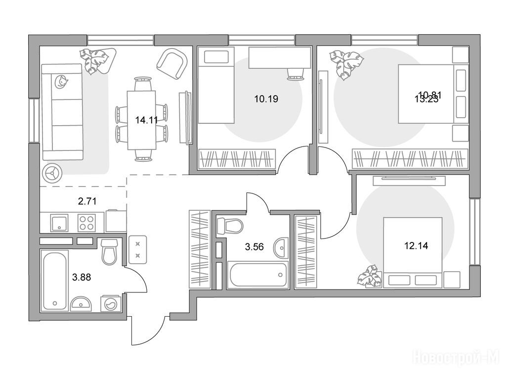Продается четырехкомнатная квартира в новостройке ЖК «Аникеевский» по адресу Московская область, Красногорск городской округ, Красногорск, вблизи д. Николо-Урюпино, корп. 7. Общая площадь квартиры - 70.63 кв. м. Тип проекта, по которому построен дом — Монолитно-кирпичный, компания-застройщик — ГК «Гранель». Стоимость квартиры — 12 665 541 руб. Способы оплаты можно уточнить у продавца. Срок сдачи — 4 квартал 2027. Более подробная информация по телефону.