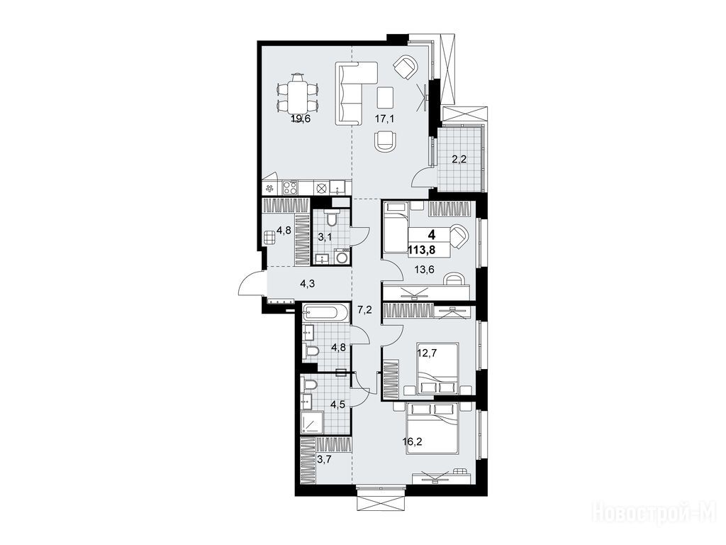Продается четырехкомнатная квартира в новостройке ЖК «Дзен-кварталы» по адресу Москва, ТиНАО, Новомосковский АО, Сосенское С/П, ул. Александры Монаховой, корп. 5.2. Общая площадь квартиры - 113.8 кв. м. Тип проекта, по которому построен дом — Монолитно-кирпичный,Железобетон, компания-застройщик — ООО «А101». Стоимость квартиры — 38 669 240 руб. Способы оплаты можно уточнить у продавца. Срок сдачи — 4 квартал 2027. Более подробная информация по телефону.