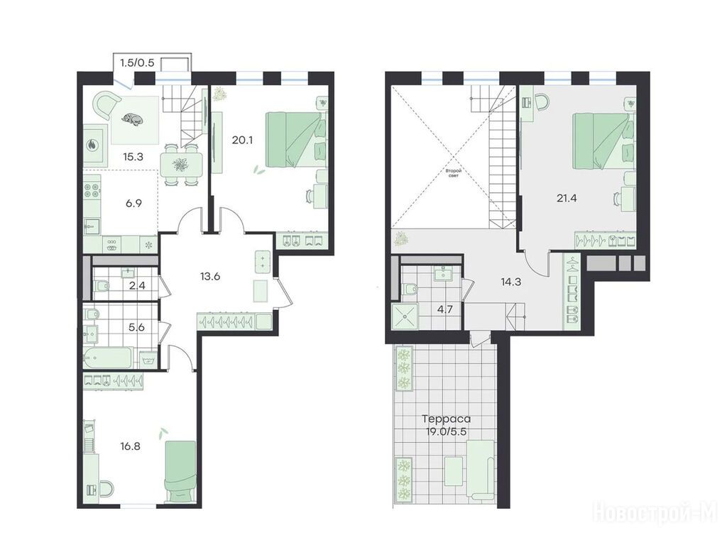 В джи три театральном меня зацепило, что есть двухуровневые квартиры. Проект производит хорошее впечатление, интересные планировки.